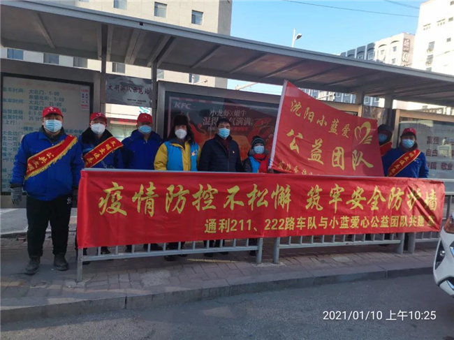 1月10日上午10時(shí),沈陽(yáng)小藍(lán)爰心公益團(tuán)隊(duì)隊(duì)員來(lái)到通利公司211、222路大北門(mén)車(chē)隊(duì),冒著嚴(yán)寒送來(lái)了抗疫物資300個(gè)口罩和兩箱消毒液,并和車(chē)隊(duì)共同開(kāi)展了“疫情防控不松懈筑牢安全防護(hù)墻”主題宣傳活動(dòng),使廣大駕駛員感受到在抗擊疫情斗爭(zhēng)中,社會(huì)爰心團(tuán)隊(duì)對(duì)公交車(chē)隊(duì)的支持與關(guān)愛(ài)。