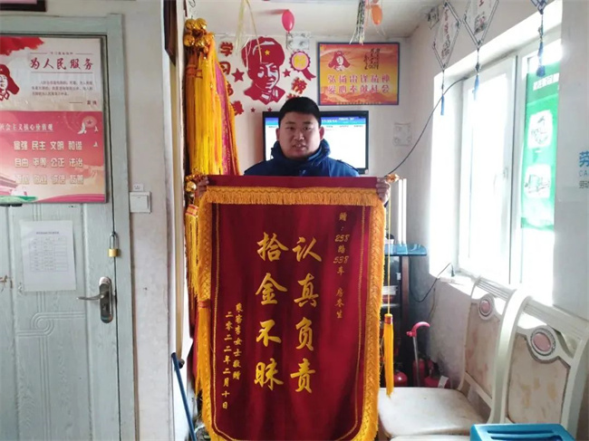 2月10日,258路車隊迎來一位熟悉的面孔,她帶著印有“認(rèn)真負(fù)責(zé) 拾金不昧”的錦旗,說是要謝謝駕駛員房冬生。