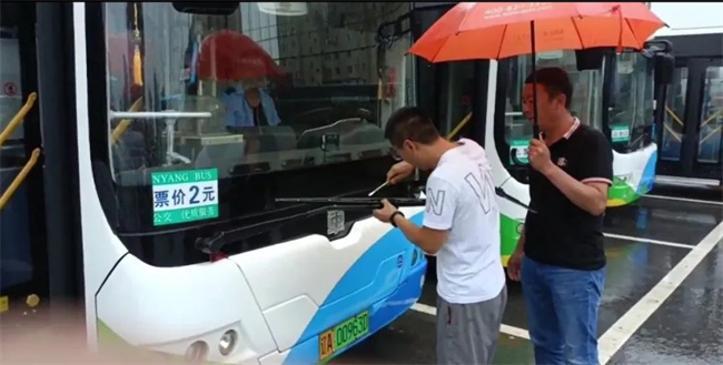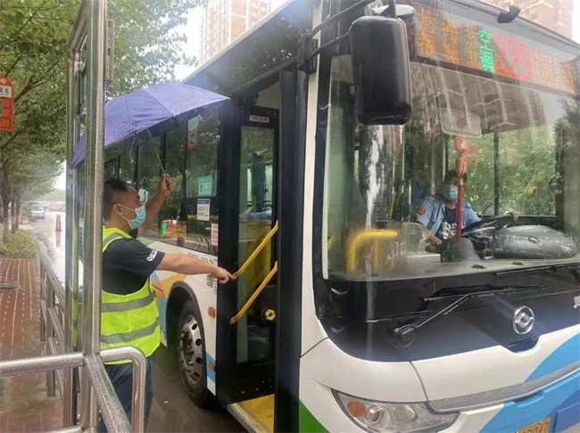 鑫暢公司車隊長叮囑每名駕駛員,樹立安全意識,雨天慢行,強調(diào)進站緩行、防止濺水、安全運營。