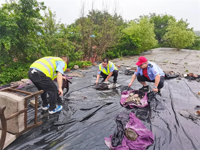 通利公司部分場區(qū)站務(wù)設(shè)施被暴雨損壞,工作人員及時修補、清理。