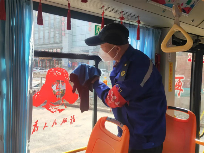 各車隊(duì)隊(duì)長(zhǎng)帶領(lǐng)駕駛員擦洗運(yùn)營(yíng)車輛,打掃車內(nèi)衛(wèi)生,駕駛員也自發(fā)加入其中,全力為乘客提供整潔舒適的乘車環(huán)境。