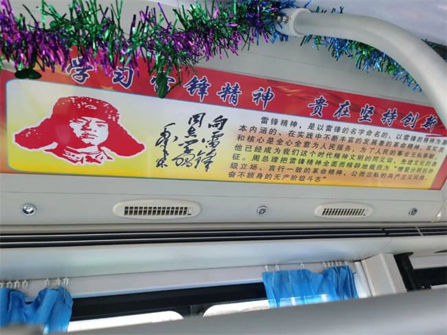 在3月5日當(dāng)天,209路車隊(duì)組織駕駛員、車上安保人員通過(guò)車廂展板內(nèi)容,對(duì)雷鋒的生平事跡進(jìn)行了全方位介紹,讓廣大職工了解雷鋒故事、學(xué)習(xí)雷鋒行為、傳承雷鋒精神。
