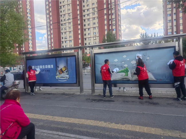 活動中,志愿者們手拿抹布、水桶、掃帚等清潔工具,認(rèn)真對廣場、綠地的衛(wèi)生及周邊的隔離護(hù)欄、公交候車亭及站牌、街路牌、果皮箱等公共設(shè)施進(jìn)行徹底擦拭清潔。志愿者們充分發(fā)揚(yáng)奉獻(xiàn)精神,用實際行動換來了廣場環(huán)境面貌的煥然一新,也收獲了過往市民群眾的連連稱贊。