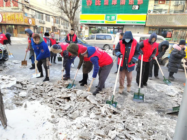 在志愿者們的帶動下,許多普通居民和沿街商戶也陸續(xù)加入到清除冰雪的隊伍之中,大家齊心協(xié)力清掃出一條條“暖心平安路”,確保了市民的安全出行,用“共掃全城雪”的實際行動,美化家園、扮靚城市、溫暖人心。