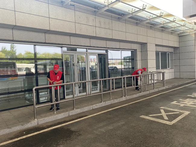 108.100路車隊(duì)組成的志愿服務(wù)隊(duì)來到沈陽(yáng)南站公交樞紐站,認(rèn)真擦拭圍欄及站牌,清掃地面,使樞紐站整潔有序。