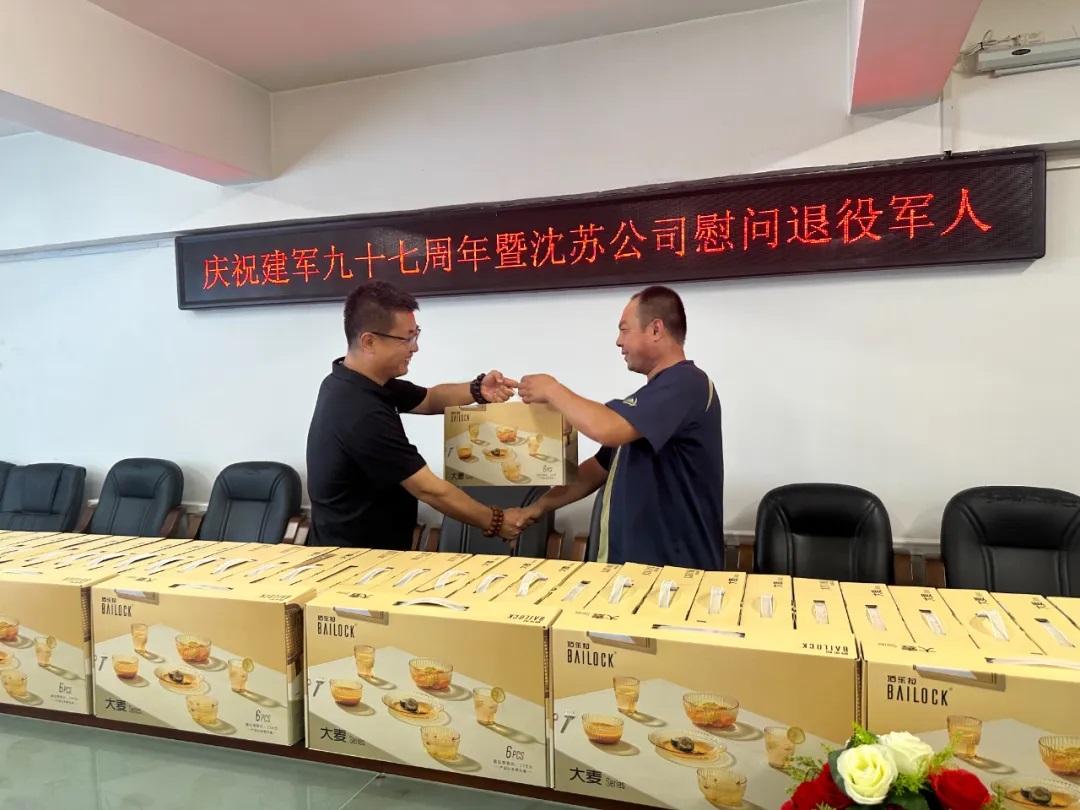堅(jiān)守不變初心,續(xù)寫嶄新榮光。在第97個(gè)建軍節(jié)來臨之際,為深入學(xué)習(xí)貫徹黨的二十大精神,厚植愛國主義思想,關(guān)愛退役軍人,增進(jìn)職工對(duì)公司的歸屬感,近日,沈蘇公司舉辦慰問退役軍人活動(dòng)。