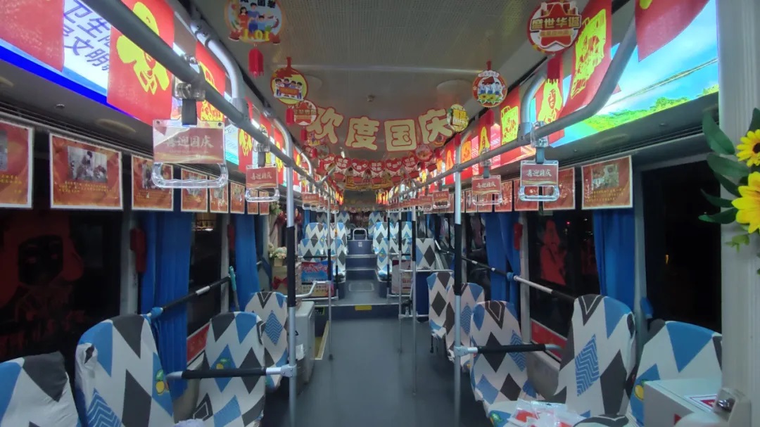國慶前夕,駕駛員精心清潔車輛、裝扮車廂,處處洋溢著節(jié)日氣氛。
