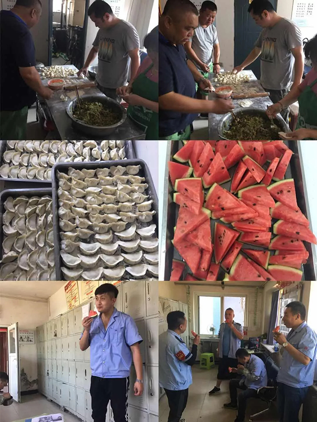 頭伏第一天雖炎熱,但各車隊(duì)都在努力為一線職工改善伙食,提供防暑降溫的礦泉水、綠豆水、西瓜等,不僅使大家開胃降溫,又增進(jìn)了干部職工間的交流,進(jìn)一步營造了車隊(duì)“一家親”的和諧氛圍。