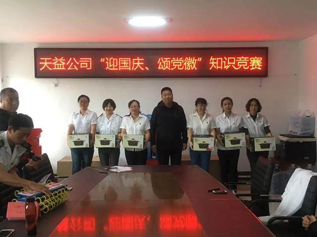 近日,天益公司黨委在公司會(huì)議室舉行“迎國慶、頌黨徽”黨建知識(shí)競(jìng)賽活動(dòng),來自公司所屬11個(gè)黨支部,共33人參加競(jìng)賽;公司黨委副書記、紀(jì)委書記趙立東、副經(jīng)理丁峰同志、基層各黨支部書一同參加了本次比賽。