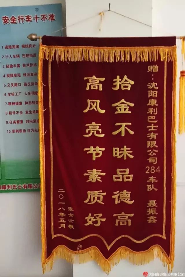 無獨有偶,還是284路車隊。5月10日,駕駛員聶振鑫在檢查車輛衛(wèi)生時,發(fā)現(xiàn)一部筆記本電腦被遺落車內(nèi),由于還要繼續(xù)行車,來不及尋找失主,便把電腦交給了車隊工作人員。失主發(fā)現(xiàn)自己電腦丟失后,抱著試試看的態(tài)度來到284路車隊,令她沒想到的是,電腦被細心的駕駛員撿到了。經(jīng)過工作人員核實,電腦的確是這位失主所有。失主對駕駛員拾金不昧的行為表示感謝,想要當面酬謝,但被聶振鑫婉言謝絕了。對于失主的感謝,聶振鑫說:“這只是我的舉手之勞,公司經(jīng)常教育我們,拾到物品后應該怎么處理,我只是用實際行動去傳遞社會正能量?!笔潞?,失主送來錦旗表示感謝。